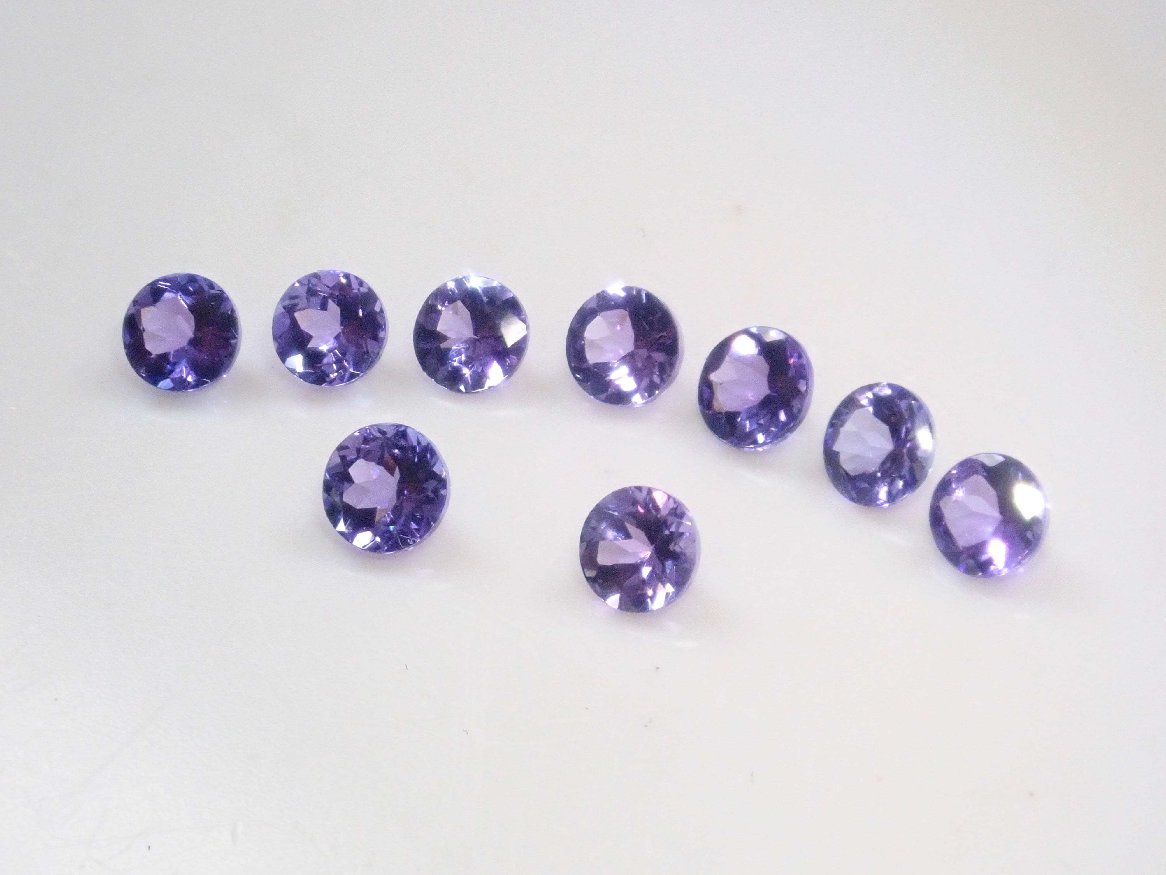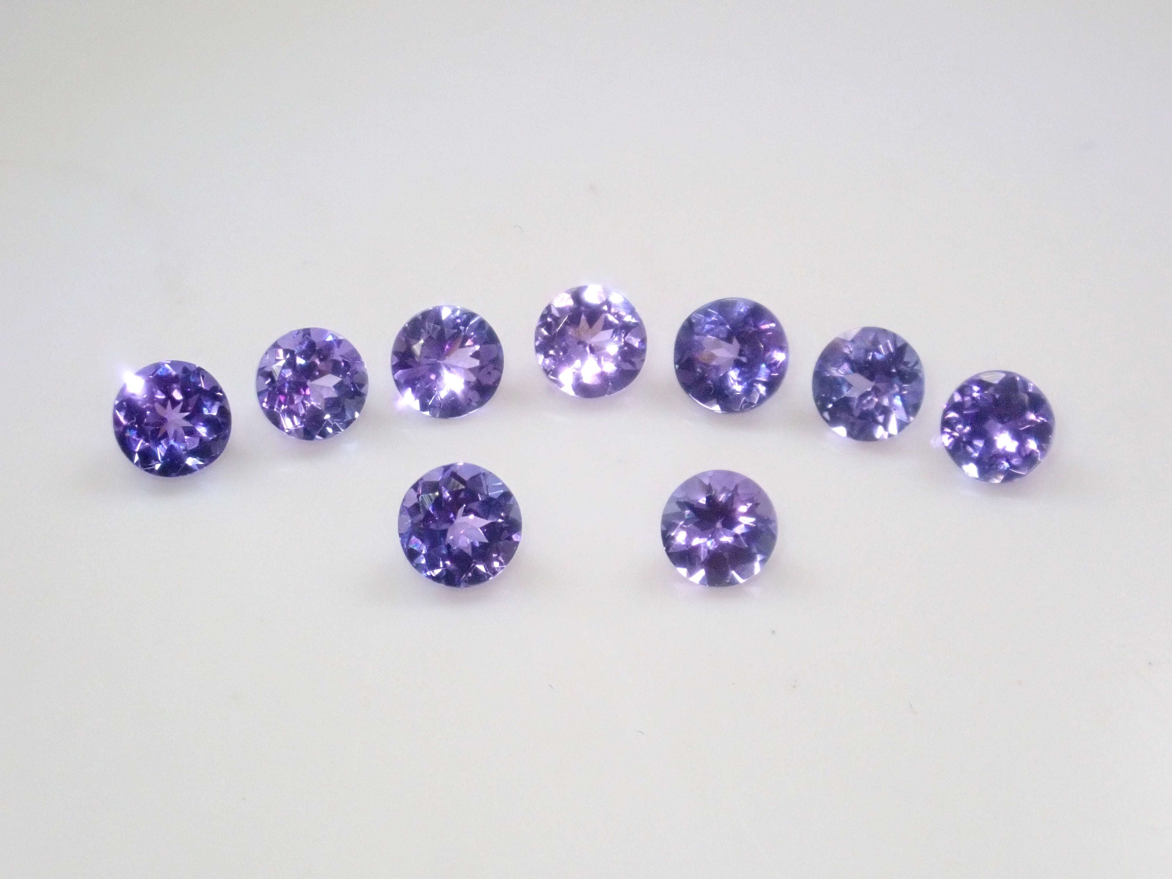 這是產自坦尚尼亞的紫色黝簾石(紫色坦桑石)。它透明度高,這是一顆高品質的裸石,閃耀著璀璨的光芒,切工考究。您將收到照片中九顆寶石中的一顆。它為圓形切割,尺寸約為4.0-4.2毫米。
