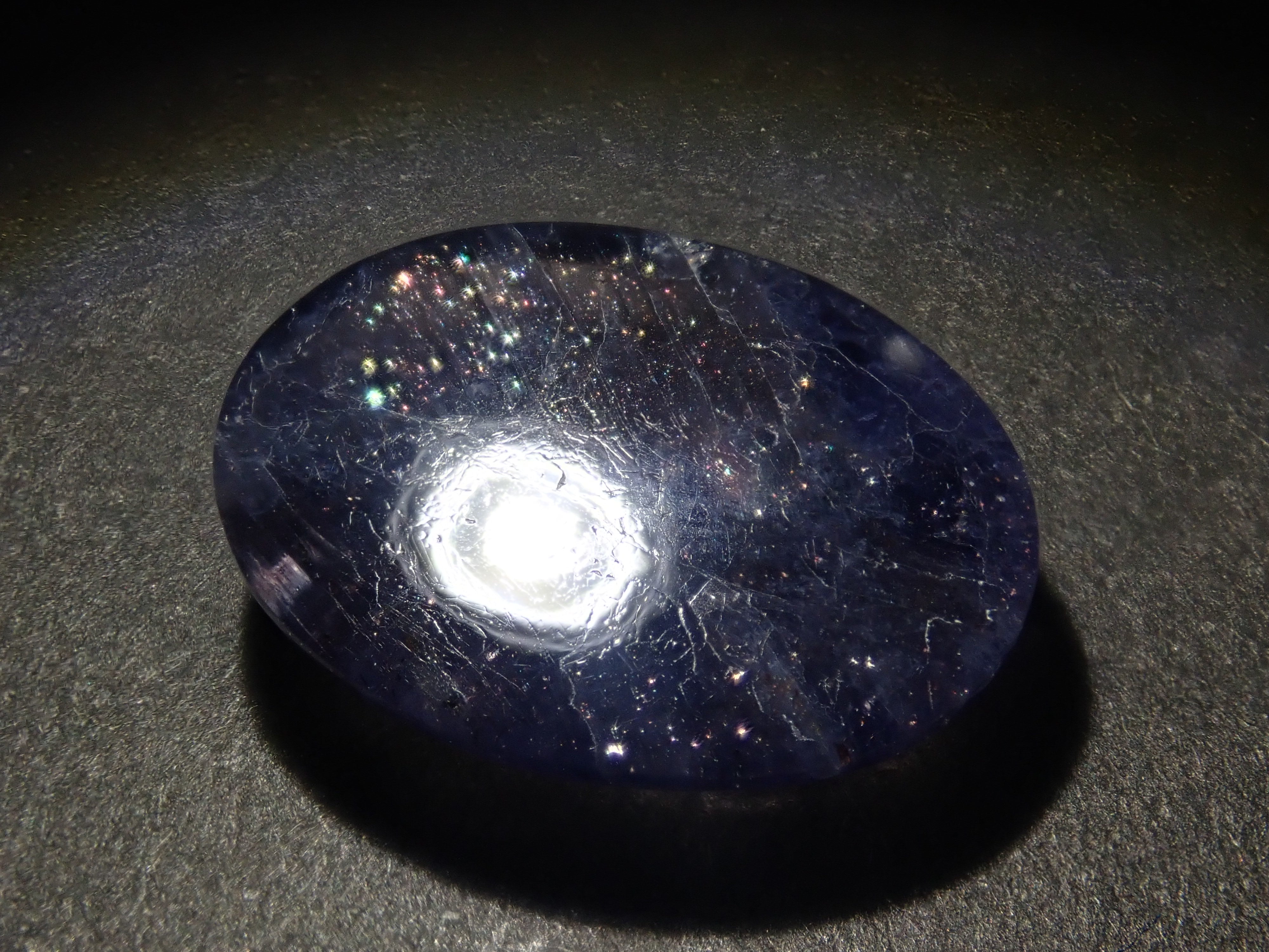 這是一顆產自印度的堇青石日光石。它經過了孕育處理,因此價格低於平常。平均尺寸為6.6克拉。您將收到照片中五顆寶石中的一顆。