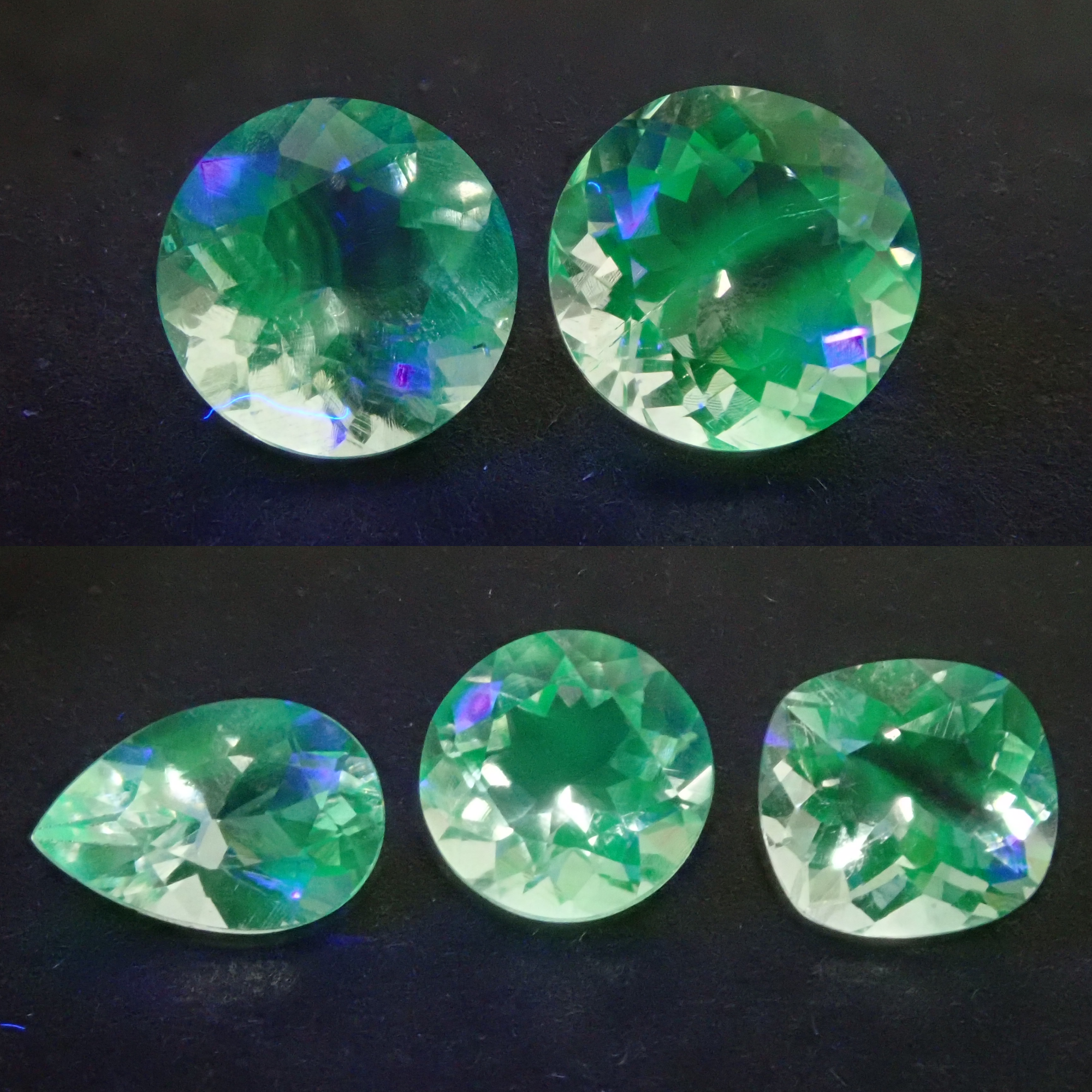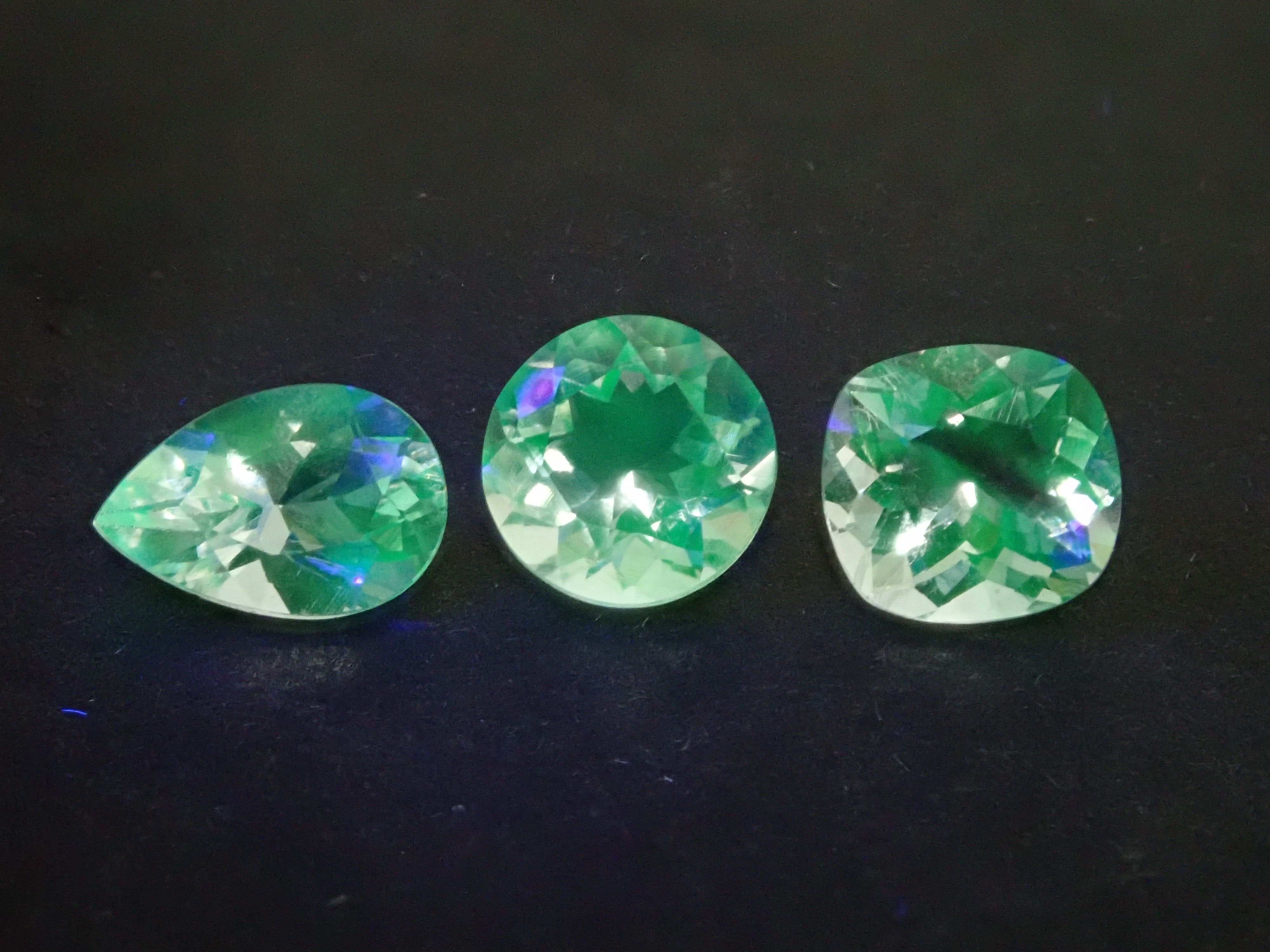 透明蛋白石在黑光照射下會發出薄荷綠的螢光。它是一種稀有寶石。顧名思義,它在礦物學上屬於蛋白石家族,但沒有遊彩。請使用黑光燈欣賞螢光。這顆墨西哥透明蛋白石透明度極高,平均重量為0.5克拉。您將收到照片中五顆寶石中的一顆。