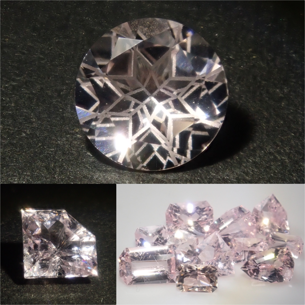 当たりはシミズ貴石様のダンデライオンカットのモルガナイトです。繊細なカットの線がモルガナイトの可憐な輝きを引き立てます。通常49800円で販売しています。その他はスリランカの研磨職人サンジェ氏によるカットのモルガナイトです。様々なシェイプのものを集めています。サンジェ氏カットのモルガナイトには、インクルージョンの多いものなども含みますので、写真をご確認ください。写真の13石の中からどれかが届きます。