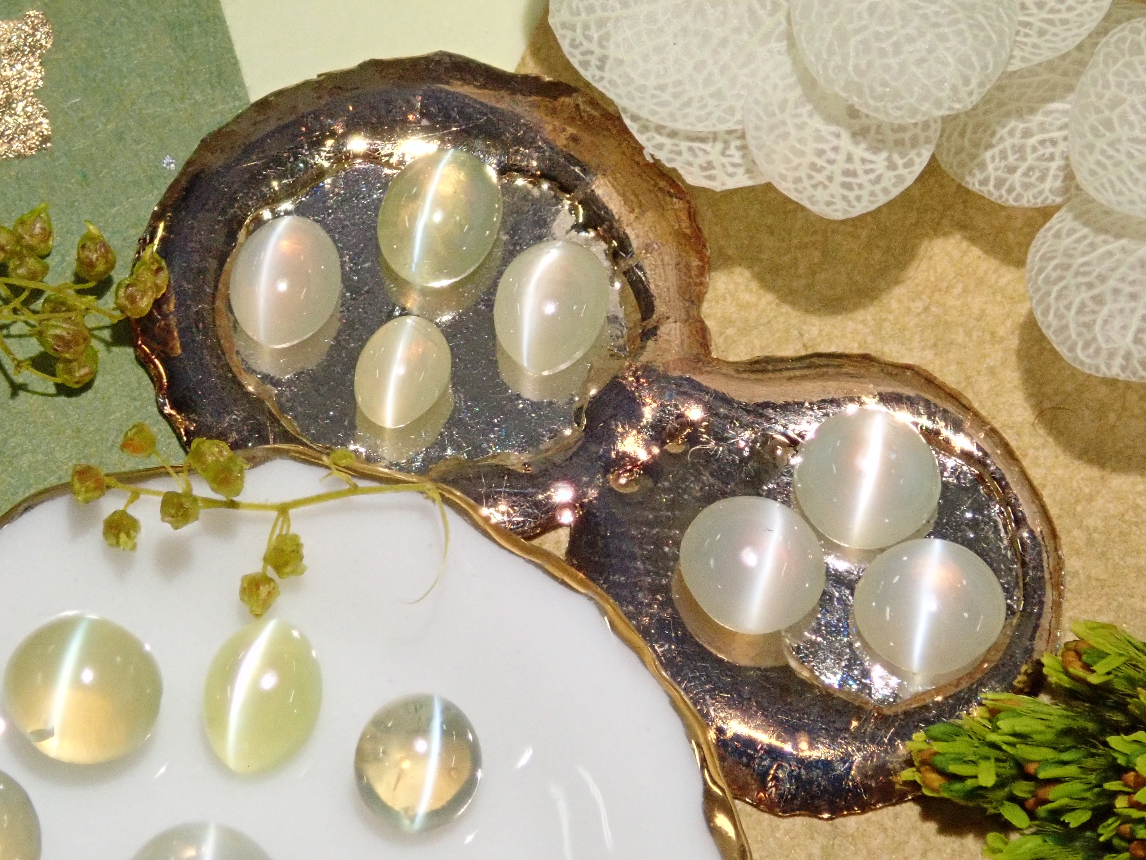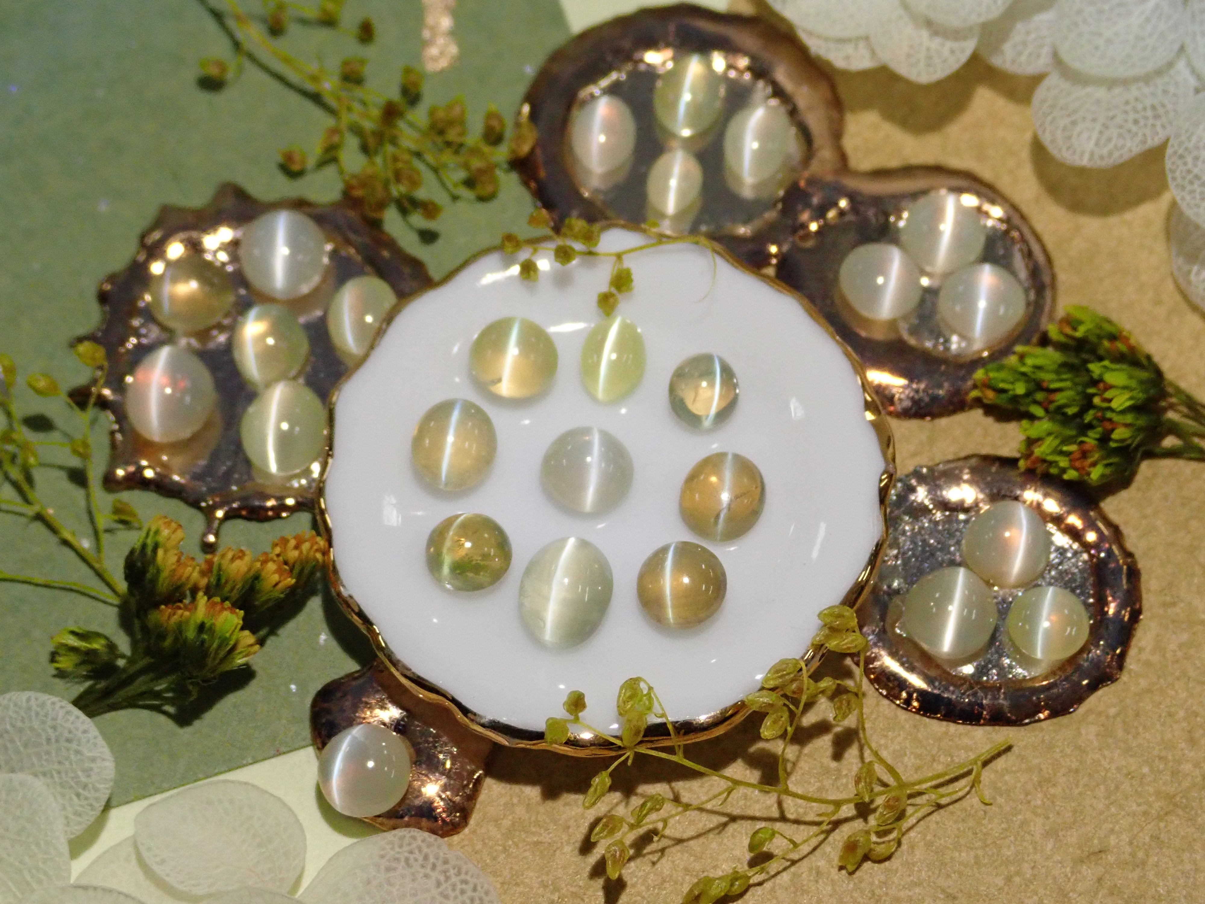 金綠寶石是一種有多種色調的寶石,從淺黃色到綠色再到深棕色。它是一種堅硬耐用的寶石。這是可以看到貓眼效果的類型,使用筆燈拍攝。石頭的背面基本上是未拋光的。 金綠寶石貓眼透明度高,可以當作貓眼來欣賞。我們精心挑選的商品,讓您充分享受貓眼的魅力。