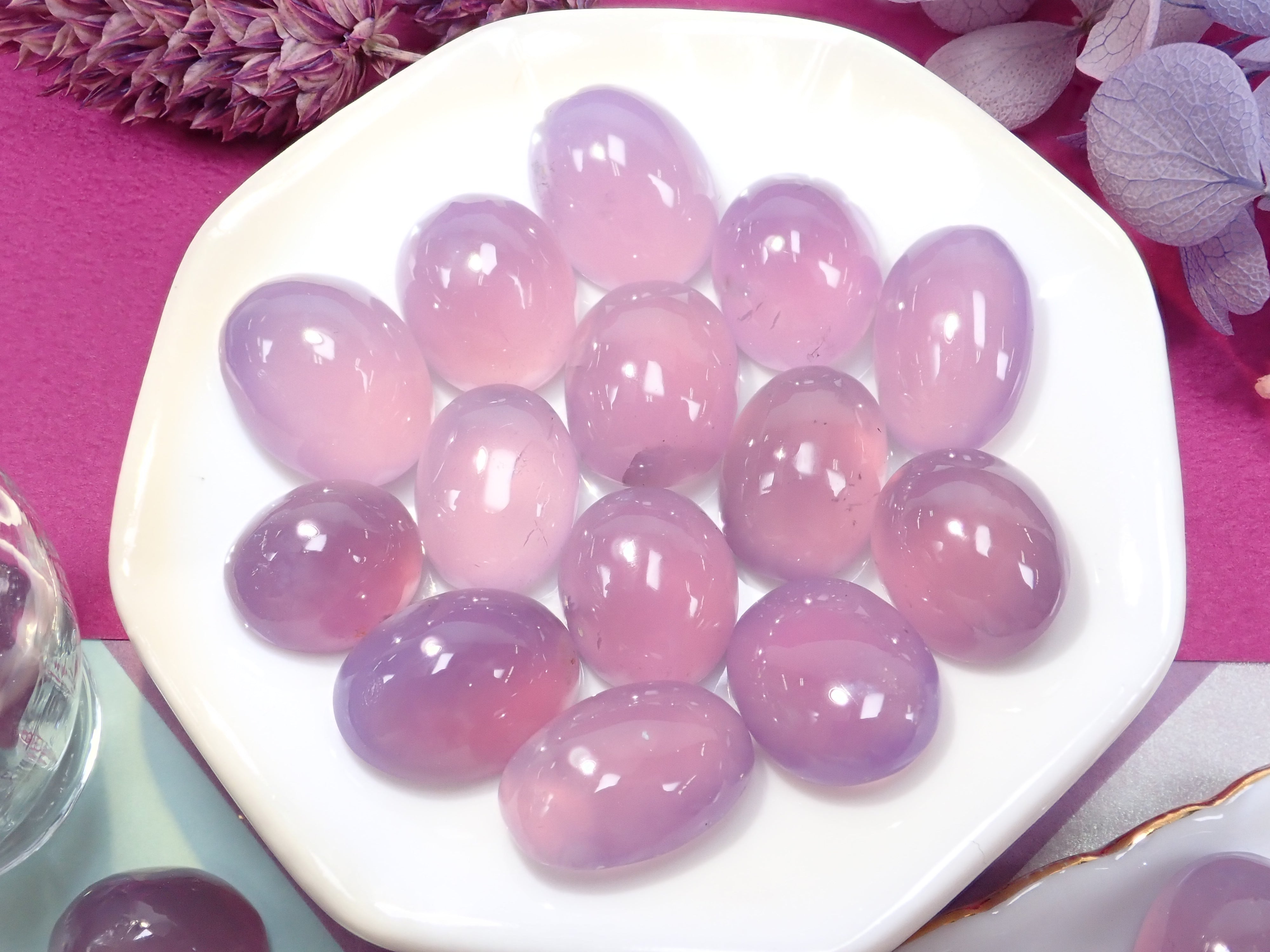 玉髓是石英的一種,但玉髓的種類很多。顏色和圖案也不同。這是一顆深奧的寶石。這在日本是很少見的。它是一種具有葡萄般顏色的紫色玉髓。