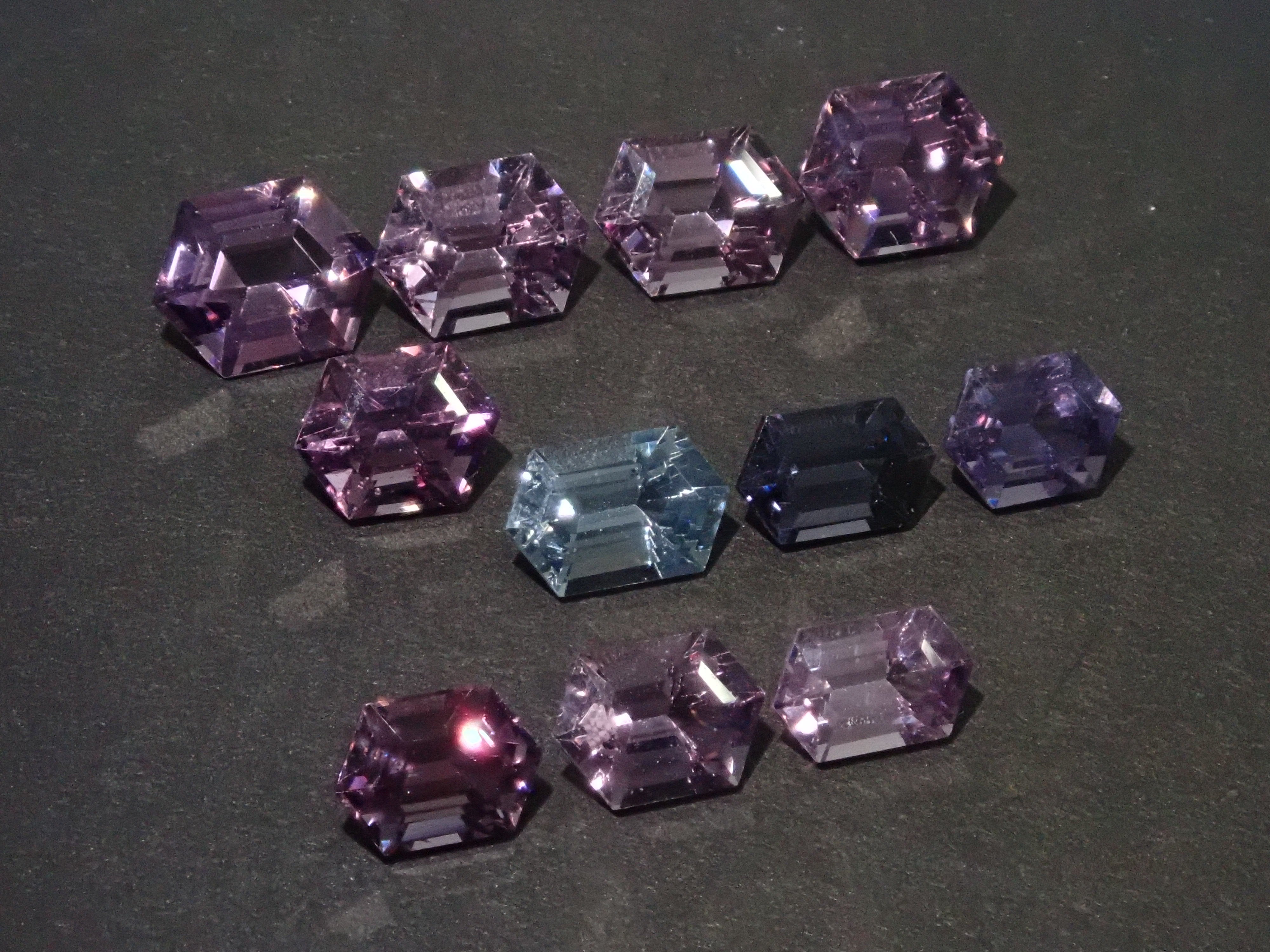 這次是尖晶石。這是一個寶石扭蛋,您一定會贏得照片中的一顆定制切割尖晶石。尖晶石是八月生日石,有多種顏色,如藍色、紫色和紫羅蘭色。所有尖晶石都是透明的,其尺寸使其十分引人注目。其中一些在黑光照射下會發出綠色螢光。