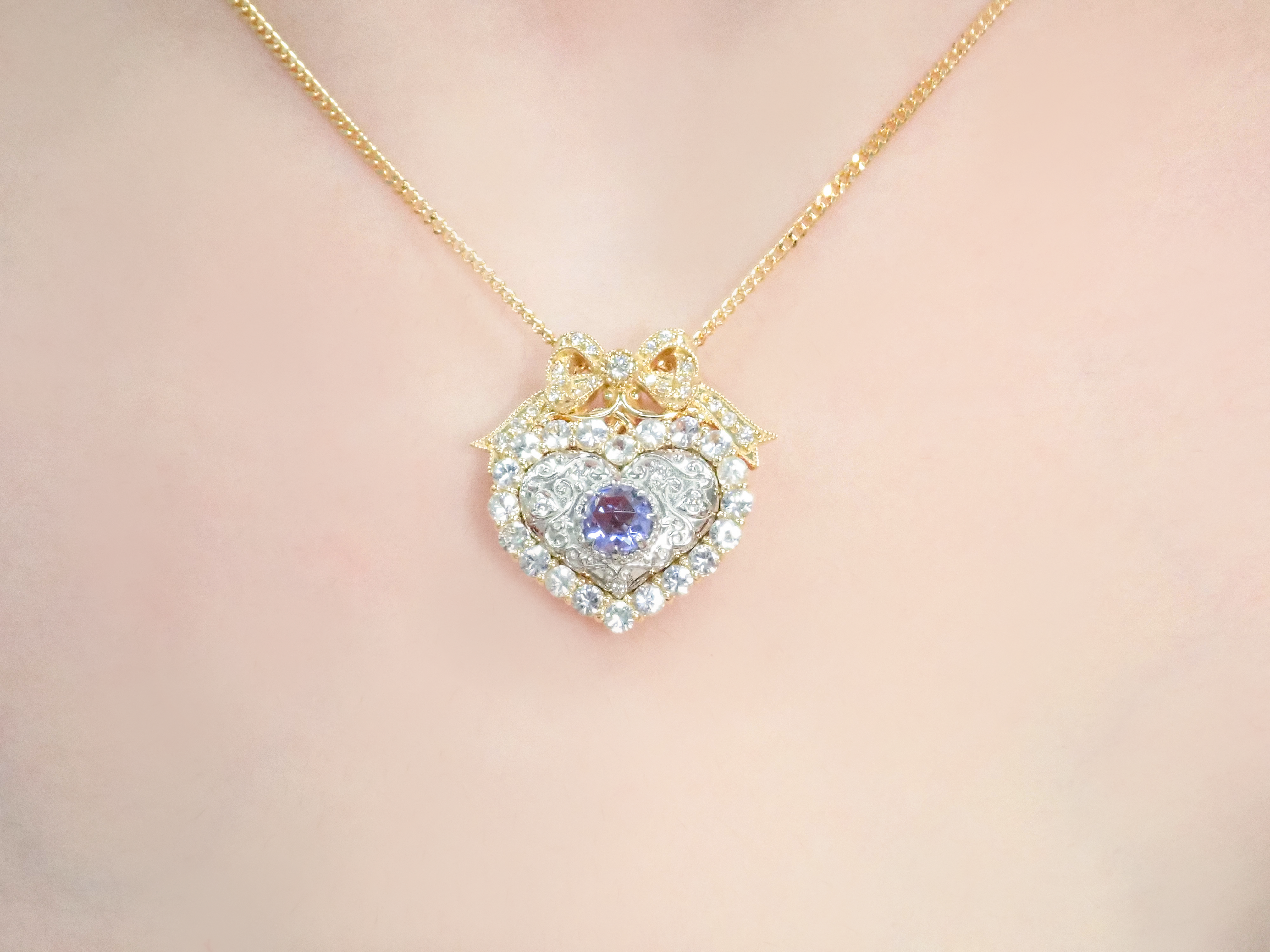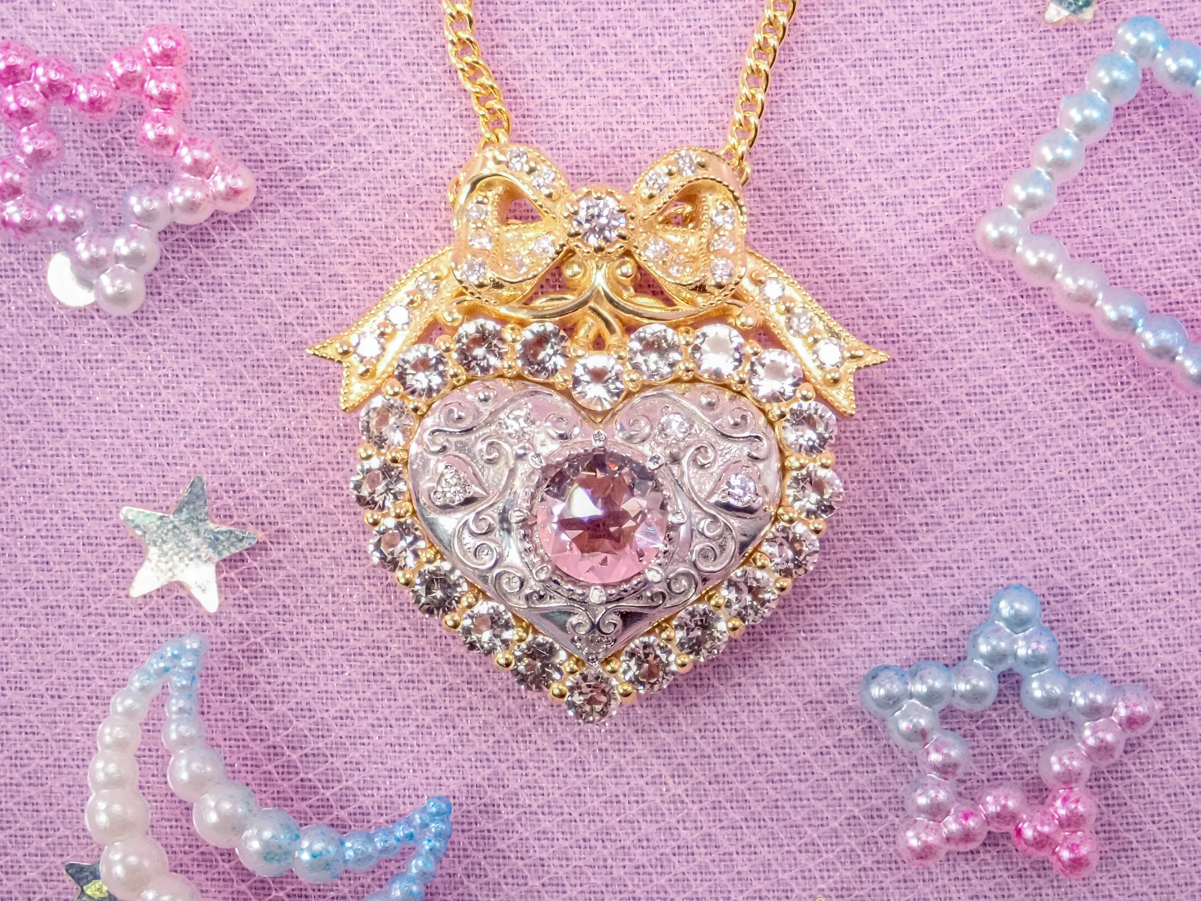 金條 | 鏈條、絲帶和心形裝飾 18KYG(黃金) 心形內部 *樣本圖中的銀色部分 有 3 種類型可供選擇 1.Pt950 2.K18YG(黃金) 3.K18PG(粉紅金) |