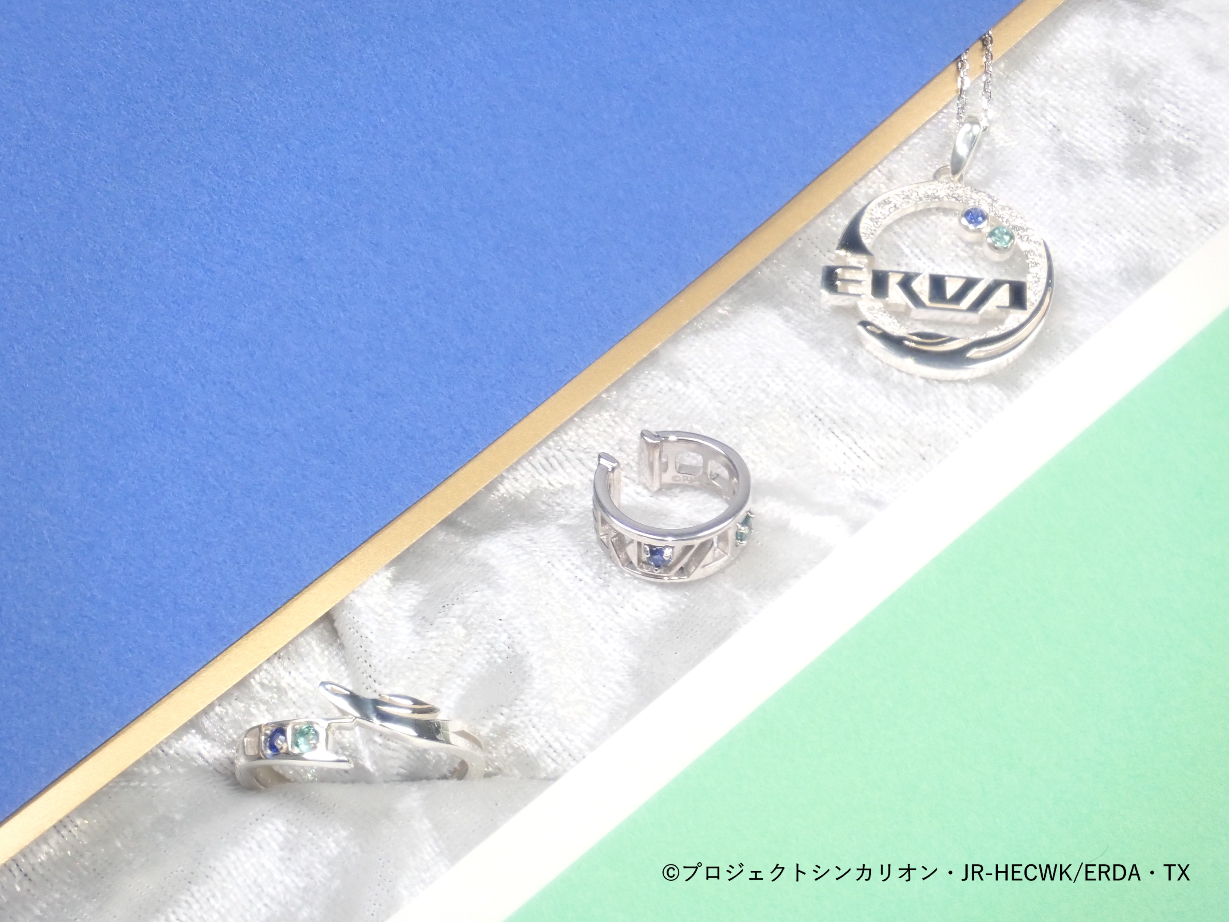 這三件作品採用藍色藍寶石和綠色磷灰石,並融入「ERDA」元素,打造簡約時尚的外觀。