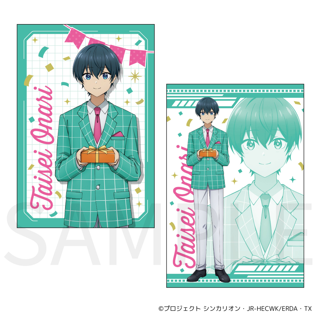 這套明信片的主角是穿著時尚西裝、手拿禮品盒的 Taisei、Akane 和 Ryota。